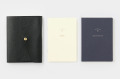 〔トゥデイ〕マンスリーブロック手帳は、1日1マスの月間ブロックタイプ。本文(ほんもん)は、書き心地がよくて、裏抜けしにくくにじみにくいオリジナル用紙を使用。万年筆や水性ペンにも適しています。わずか32ページのミニマルなスケジュール帳。詳細は〔トゥデイ〕マンスリーブロック手帳の商品ページをご覧ください。 ノート〔デイリースケッチ〕の紙も、ダイアリーと同じオリジナル用紙を使用。プレーン(無罫)なので、縦書きでも大きな字でもイラストでも、自由自在で思いのまま。たっぷり160ページ。詳細はノート〔デイリースケッチ〕の商品ページをご覧ください。 しっとりとした質感のシュリンクレザーは、発色がきれいで手によく馴染みます。内生地を貼らずに仕上げているので、自然で柔らかな革の質感が味わえます。詳細はノート&ダイアリー用レザーカバー〔スケッチ〕の商品ページをご覧ください。 ニュートラルな白の厚紙に、濃茶色の箔押しを施した箱のパッケージ。ギフトにもおすすめです。 上記の組み合わせパターンを参考に、単品ごとに選べば、さらに自分好みのダイアリーセットになります。色や仕様については、それぞれ単品の商品ページでご確認ください。