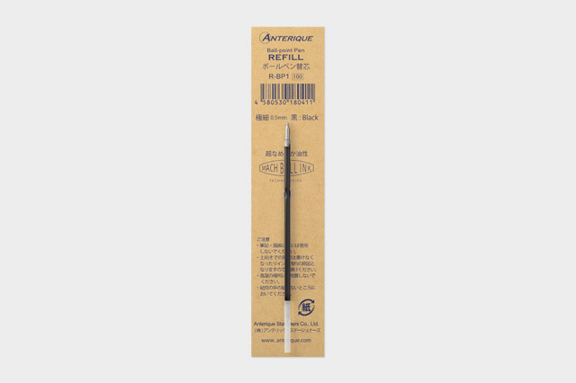 Anterique BP1 ボールペン専用の替え芯です。サラサラと書き心地の良い、超低粘度油性“マッハボールインク”です。インク漏れを起こさないように精密に加工されたペン先(ボールチップ)は、スプリング内蔵式でインクの流れを的確にコントロールしてくれます。