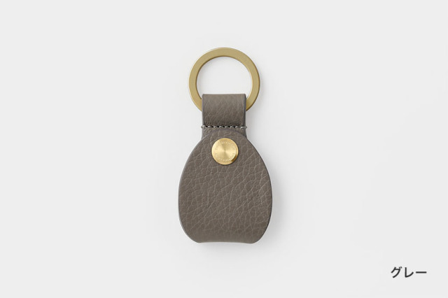 手のひらで包み込むことができる、卵のようなフォルム。柔らかい質感のシュリンクレザーは、使っているうちに艶が増します。コバも丁寧に磨かれています。 ブラック、グレー、レッド、ベージュの4色展開。オリジナルのスナップボタンは真鍮製。旋盤で削り出した挽き物なので、放射状に光を反射します。二重リングも無垢の真鍮製なので、ゆっくりと変色していきます。 板紙に箔押しを施したマッチ箱型のパッケージ。ギフトにもおすすめです。