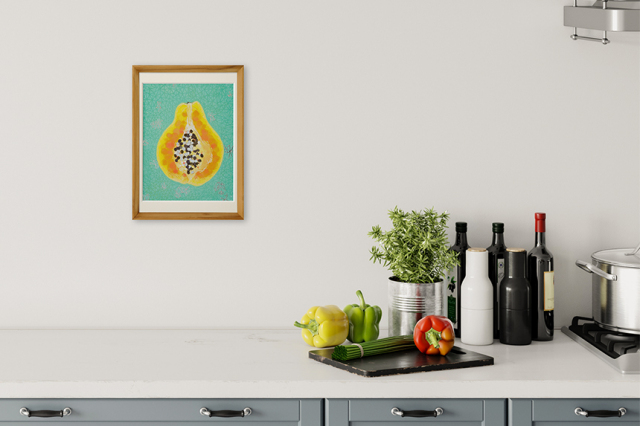 タッチアンドフローと日本画家の栗原 由子さんがコラボレーションした「クリエイティブワークスプリント(CWプリント)」のアートポスター「PAPAYA」です。 栗原 由子 | 日本画家