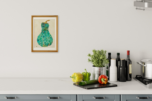 タッチアンドフローと日本画家の栗原 由子さんがコラボレーションした「クリエイティブワークスプリント(CWプリント)」のアートポスター「翡翠かぼちゃ」です。 栗原 由子 | 日本画家