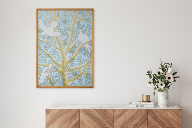 量産品でありながらも工芸品と呼べるほどに美しいこのアートポスターは、原画とはまた一味違った魅力を感じられます。ご自宅の玄関やリビングはもちろんのこと、飲食店のインテリアとしてもおすすめです。