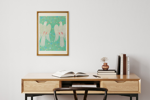 量産品でありながらも工芸品と呼べるほどに美しいこのアートポスターは、原画とはまた一味違った魅力を感じられます。ご自宅の玄関やリビングはもちろんのこと、飲食店のインテリアとしてもおすすめです。