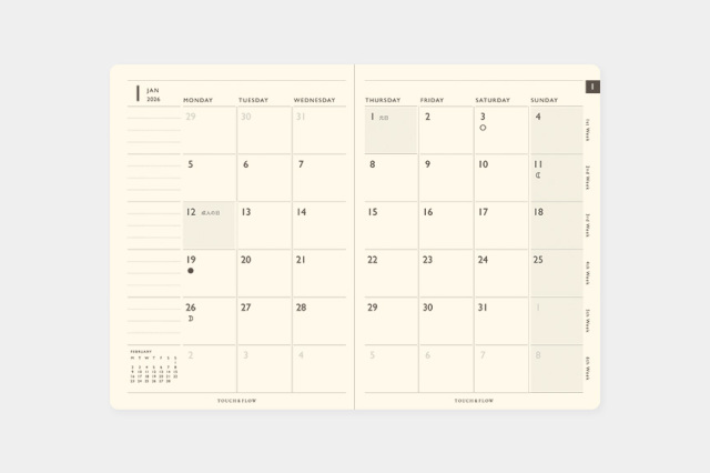 1ヵ月を管理しながら、ときどき1年を見渡す。軽くて薄くて小さいダイアリーです。