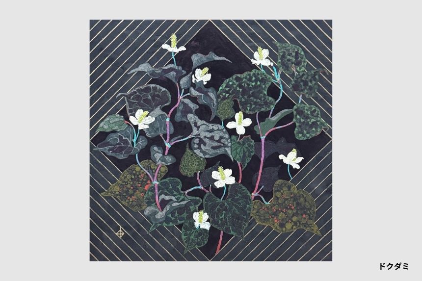 敬遠されがちな植物だけど、よく見ると葉の色や形には個性があり、花も独特でチャーミングな一面を持っているということを多くの方に知ってほしいと願って描かれた、栗原氏にとって思い入れが深い作品の一つ。